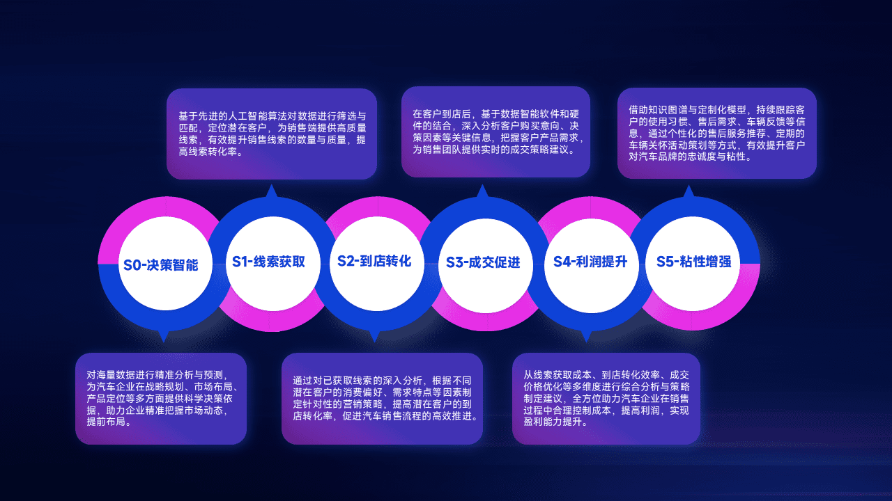 通过拓宽潜在客户来源、、、优化线索分配并提高到店转化率,,,以增强销售效率。。。。同时,,利用线索数据不断优化分析模型,,,有效提升转化率,,,,扩大营销影响力。。。。